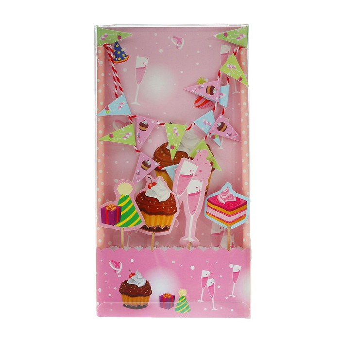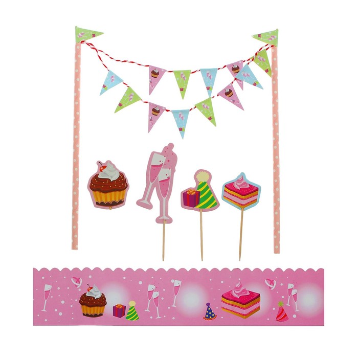 Набор для торта "Сластена" 1 гирлянда, пики 4 шт. лента для торта 1 шт.100 см (д. 30 см)