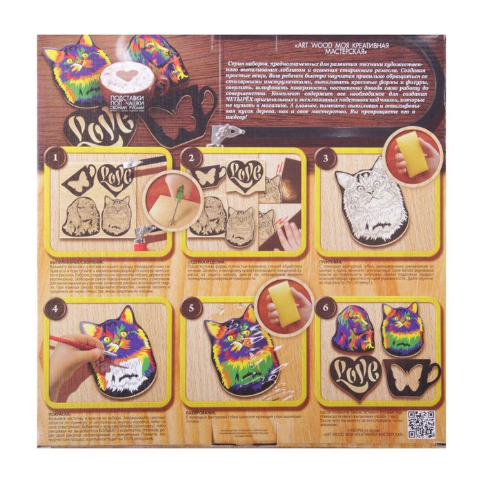 Набор для творчества ARTWOOD "Подставка под чашку": собака, бабочка, кошка, сердце