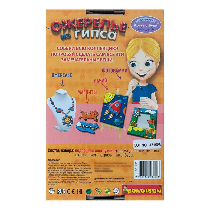 Позвольте малышке почувствовать себя настоящим творцом с помощью набора для создания украшения. Девочка использует гипс и форму для отливки, чтобы смастерить ожерелье с двумя видами фигурок, а затем декорирует его яркими красками, бусинами и стразами.