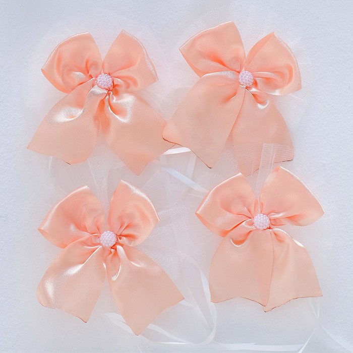 Набор для украшения автомобиля из фатина: 2 ленты на капот, 1 бант на радиатор, 4 бантика на ручки, персиковый