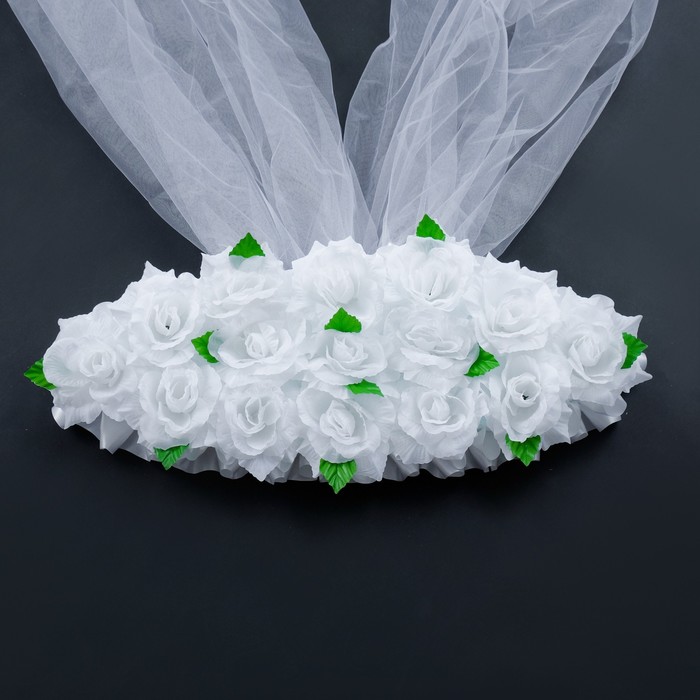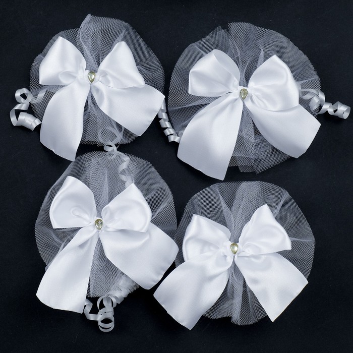 Набор для украшения автомобиля «Обручальный»: кольца на крышу, букет на радиатор, 2 ленты на капот 2.3 м, 4 бантика на ручки, белый