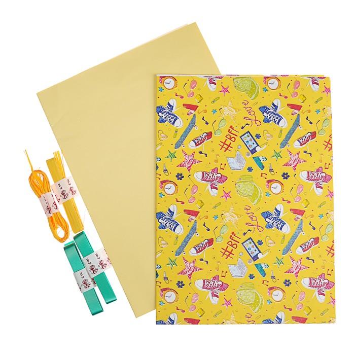 Набор для упаковки, "Фантазия№20", крафт 0,7 х 1 м х 2 шт, лента 3 м х 4 шт