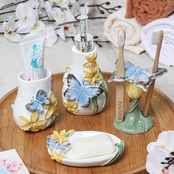 Набор для ванной "Бабочки", 4 предмета (мыльница, дозатор для мыла, 2 стакана)