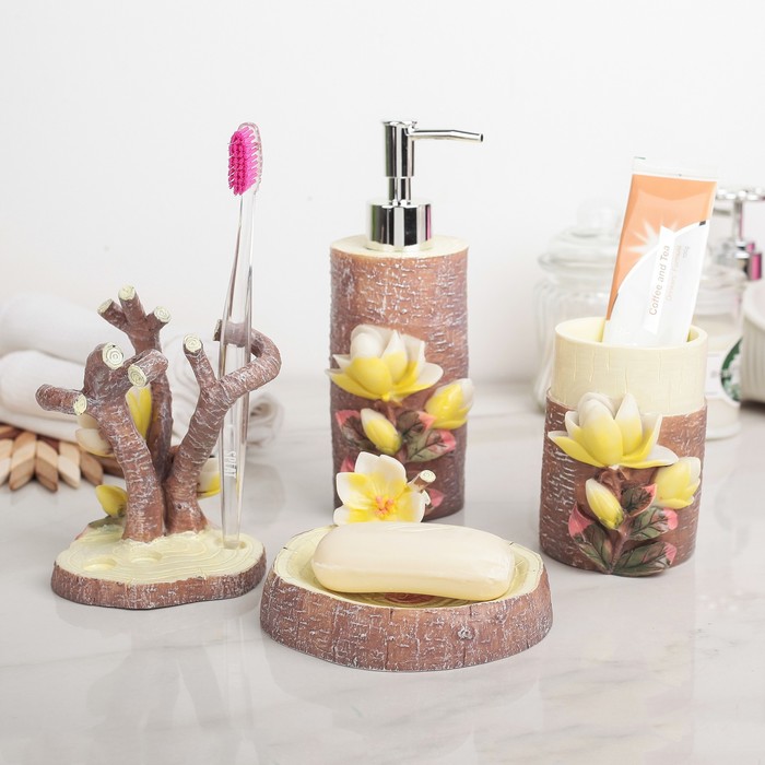 Набор для ванной "Оранжерея", 4 предмета (мыльница, дозатор для мыла, 2 стакана)
