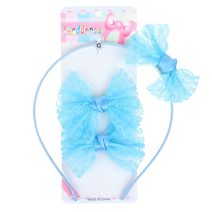 Набор для волос "Кружева" (1 ободок, 2 зажима), голубой