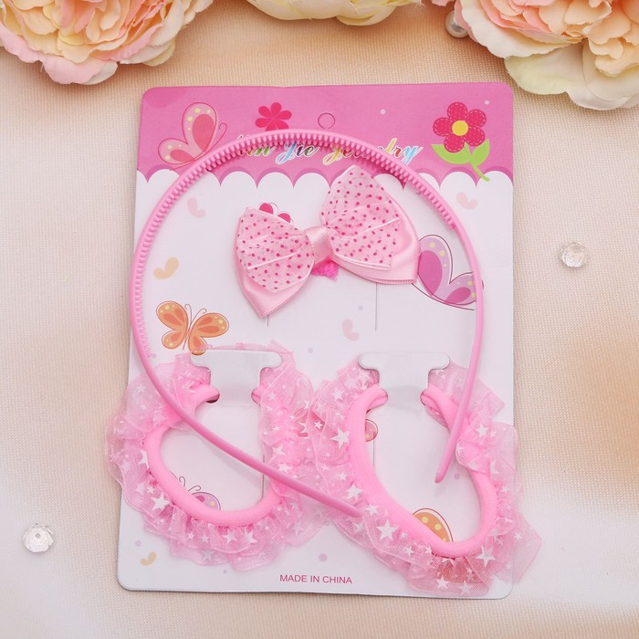 Набор для волос "Маришка" (3 резинки, 1 ободок) розовый, звёзды