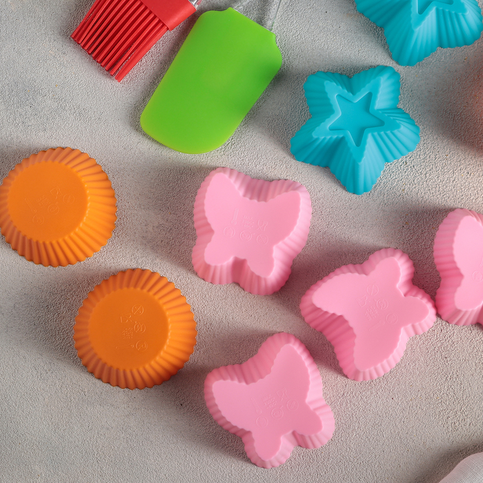 Набор для выпечки 12 предметов "Лёд": 9 форм 7х6 см, лопатка 25 см, кисть 22 см, венчик 25 см