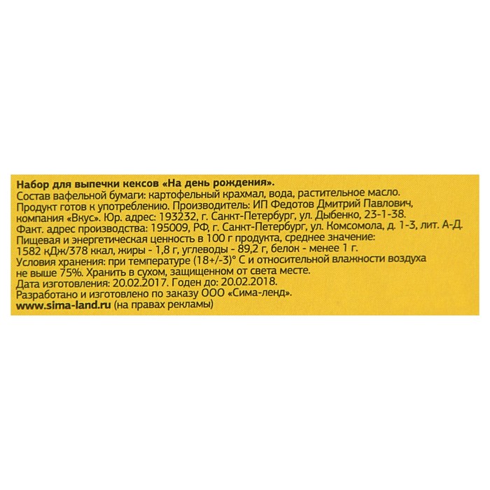 Набор для выпечки кексов "На день Рождения" (некомплект) УЦЕНКА
