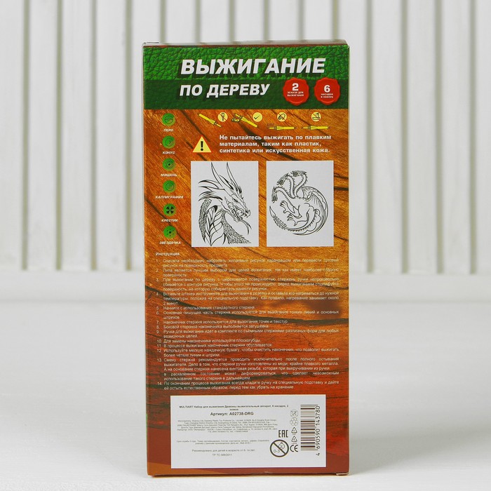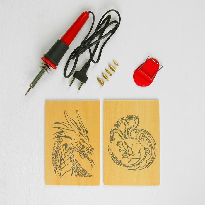Набор для выжигания "Драконы" выжигательный аппарат, 6 насадок, 2 эскиза A02738-DRG