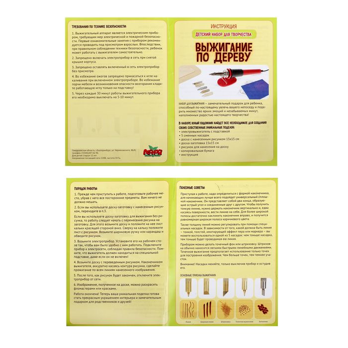 Оцените удобство выжигательного прибора, который благодаря современным технологиям ещё и абсолютно безопасен. А компактная и лёгкая ручка будет удобна даже ребёнку.