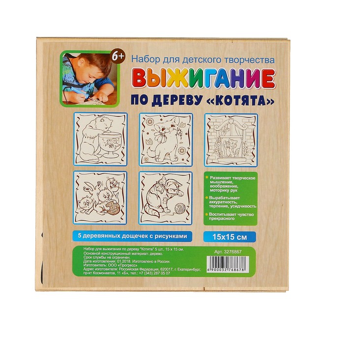 Набор для выжигания по дереву "Котята" 5 шт., 15 х 15 см