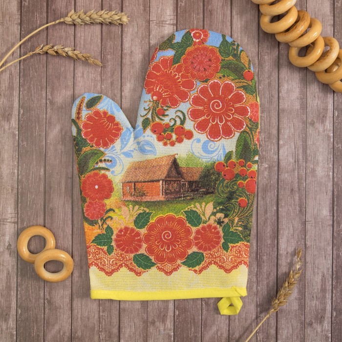 Набор "Доляна" Хлебосолье: варежка 18х26 см, прихватка 17х17 см, рогожка 162 г/м2