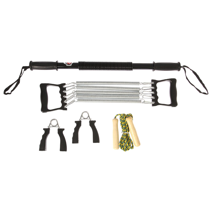 Набор 4 предмета для тренировок - это все, что вам нужно для полноценной тренировки. Состоит из кистевого эспандера, 2 грудных и скакалки. Применяйте его для лучших результатов.