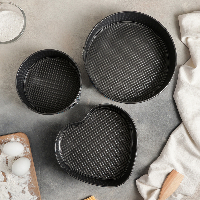 Набор форм для выпечки разъемных "Флорсет", 3 шт: 25/21/17 см, антипригарное покрытие