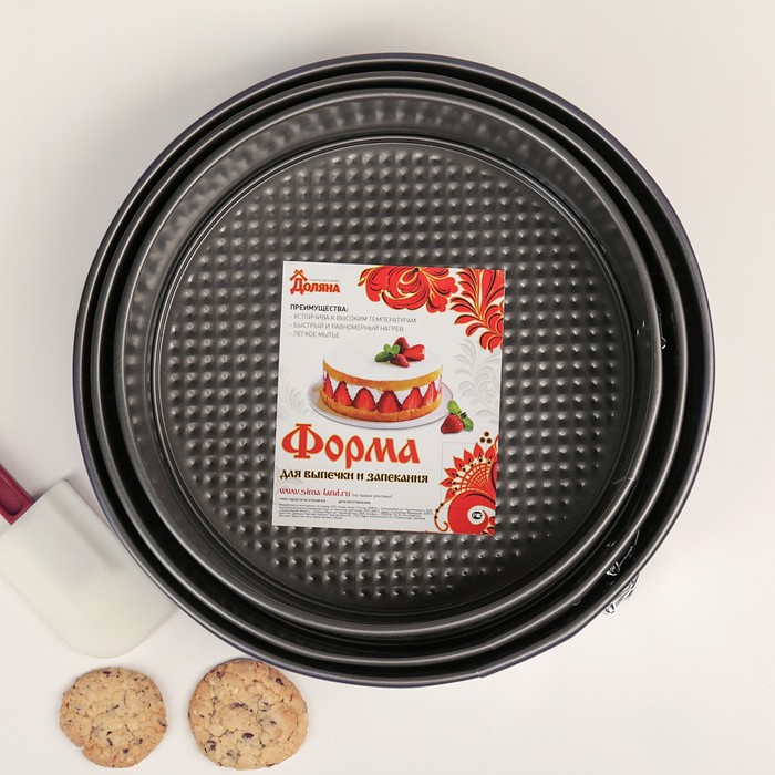 Набор форм для выпечки разъемных "Флорсет", 3 шт: 26/24/22 см, антипригарное покрытие