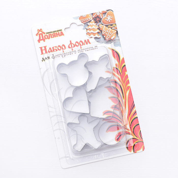Набор форм для вырезания печенья 7x13 см "Сердце,круг,капкейк,мишка", 6 шт