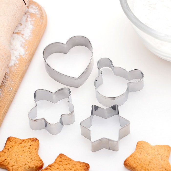 Набор форм для вырезания печенья 8х8 см "Сердце, звезда, цветок, мишка", 4 шт