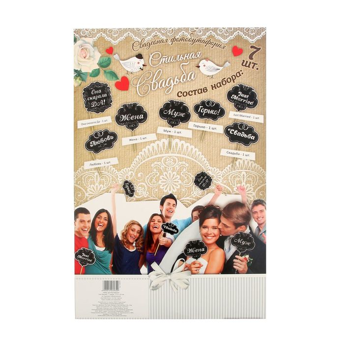 Набор фотобутафории «Стильная свадьба», состоящий из 7 табличек — прекрасный выбор для создания атмосферы праздника и удивительных свадебных снимков, которые останутся на память и будут вызывать тёплые воспоминания об этом дне. Товар отличается не только оригинальным дизайном и высоким качеством, но и имеет яркую красивую упаковку.