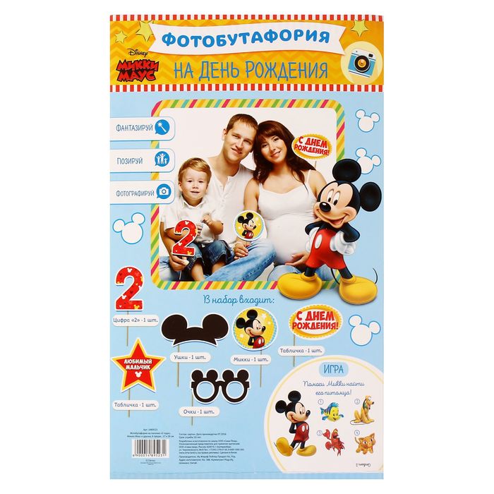 Набор фотобутафорий на палочках "2 года", Микки Маус и друзья