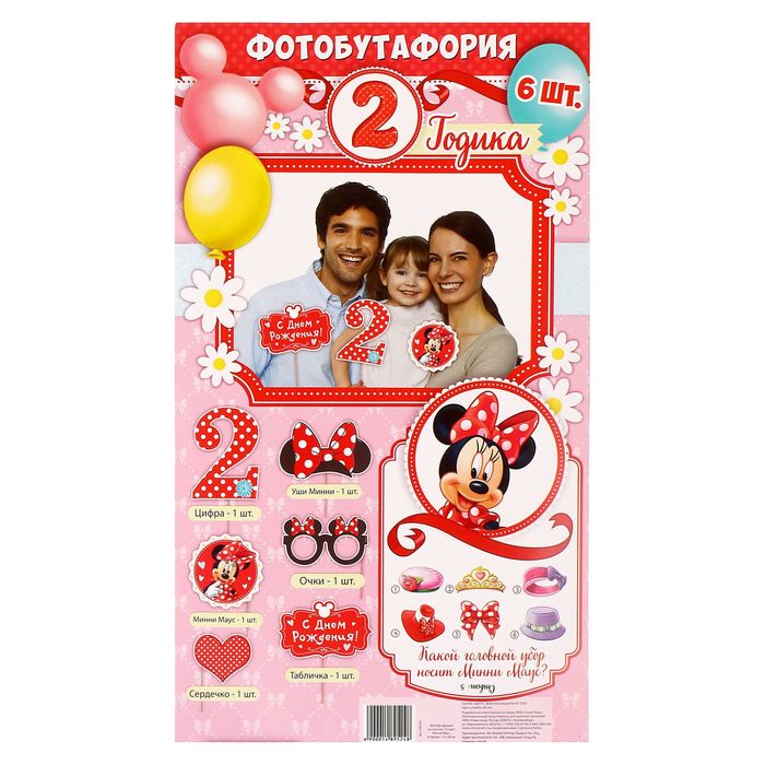 Набор фотобутафорий на палочках "2 года", Минни Маус