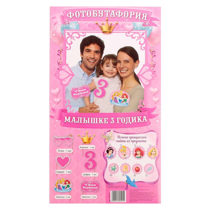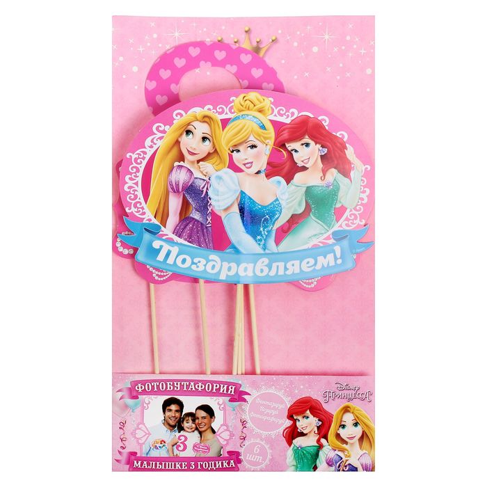 Набор фотобутафорий на палочках "3 года", Принцессы