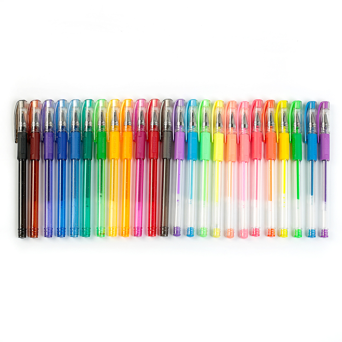 Набор гелевых ручек 24цв флуор,пастель,металлик с резиновым держателем в блистере на кнопке поможет организовать ваше рабочее пространство и время. Востребованные предметы в удобной упаковке будут всегда под рукой в нужный момент.