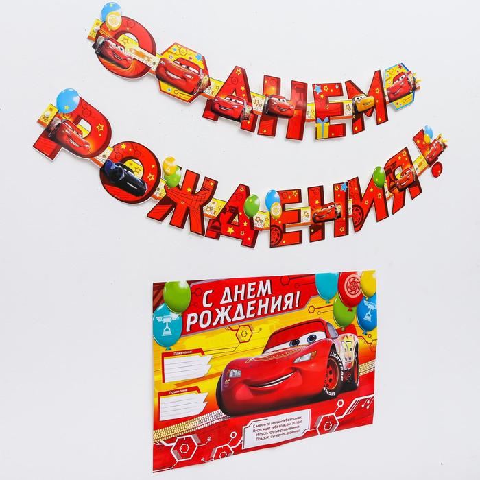 Набор гирлянда на люверсах с плакатом "С Днем Рождения", Тачки, 16 х 21 см