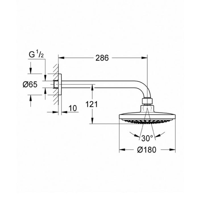 Набор GROHE Euphoria Cosopolitian 180: верхний душ с душевым кронштейном 286 мм,9,5 л/мин. 26072000