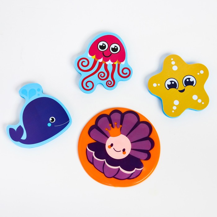Набор игрушек для ванны «Морские жители»: наклейки из EVA, 3 шт. + мини-коврик на присосках