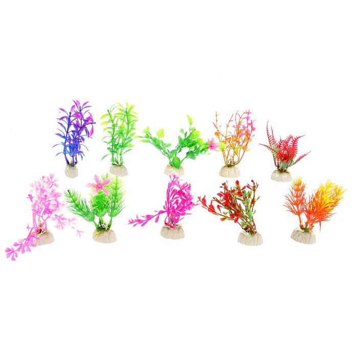 Набор из 10 искусственных растений для аквариума, 10 см, микс видов поможет вам сделать из своего аквариума произведение искусства. Практичный элемент впишется в любой подводный пейзаж, превращая обычную ёмкость в притягивающий внимание предмет интерьера. Каждый, кто увидит ваш аквариум, удивится резвящимся в нём рыбкам, которым больше никогда не будет скучно.