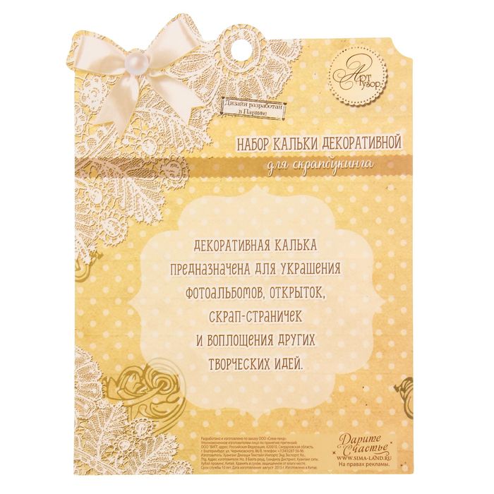 Набор кальки декоративной для скрапбукинга "От всей души", 14,5 х 14,5 см придаст вашему изделию лёгкости, нежности и воздушности. Три листа из полупрозрачного материала толщиной 70 г/м² выдержаны в едином стиле, но каждый обладает индивидуальным дизайном. Один из них предназначен для оформления фотографий, второй — фон для скрап-работ, а третий отлично подойдёт для вырезки отдельных элементов.