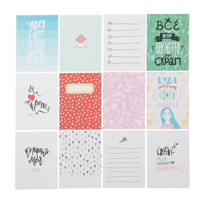 Набор карточек для скрапбукинга (12 шт) "Scrapgirl" 7,5х10 см, 190гр/м2