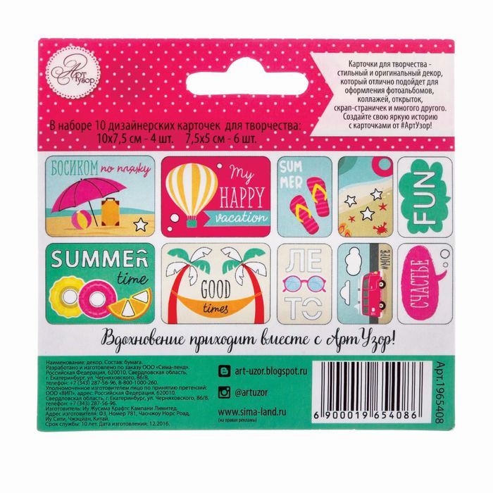 Набор карточек для творчества "#Summer time", 9,5 х 10 см