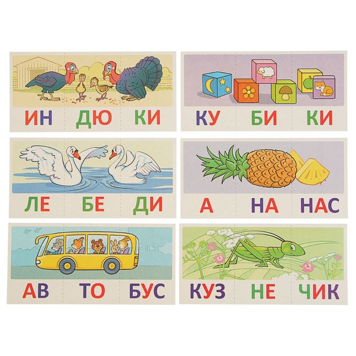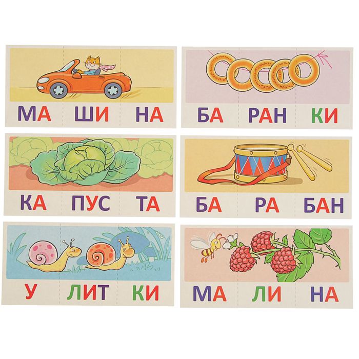 Набор карточек с рисунками "Читаем по слогам" трехсложные слова, 84х108/32