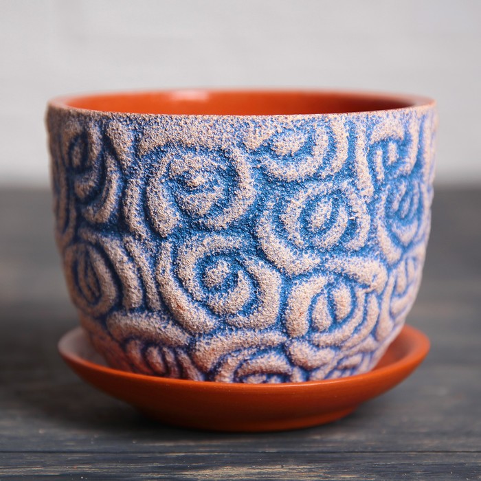 Набор кашпо 4 шт. "Розы" глазурь, лазурь 4 л/ 3 л/ 2 л/ 1 л
