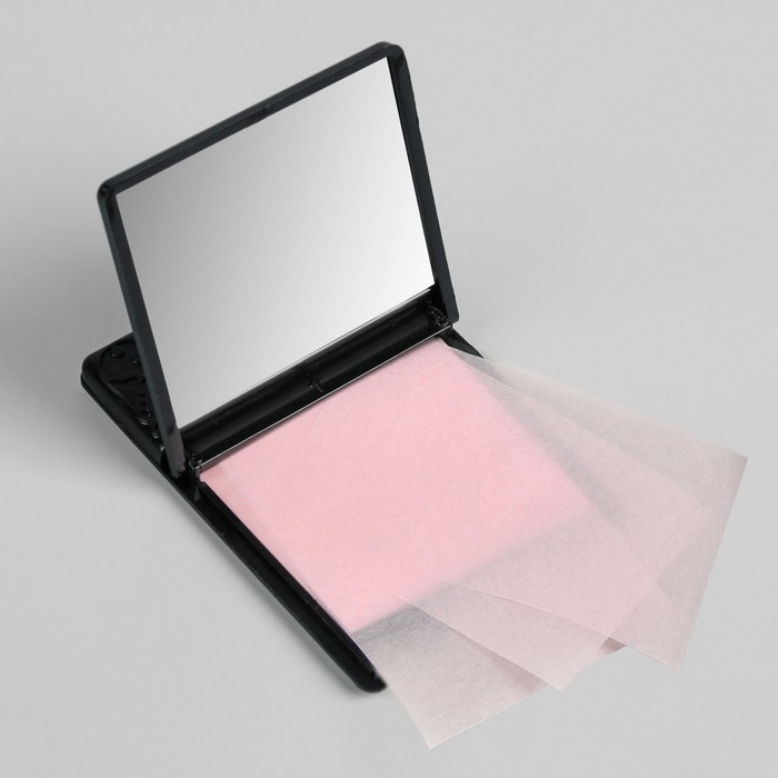 Набор кистей для макияжа, с зеркалом, с матирующими салфетками, 5 предметов, в футляре, цвет чёрный