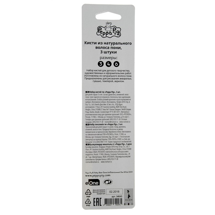 Набор кистей пони круглые №3,4,6 "Свинка Пеппа", 3 штуки поможет организовать ваше рабочее пространство и время. Востребованные предметы в удобной упаковке будут всегда под рукой в нужный момент.