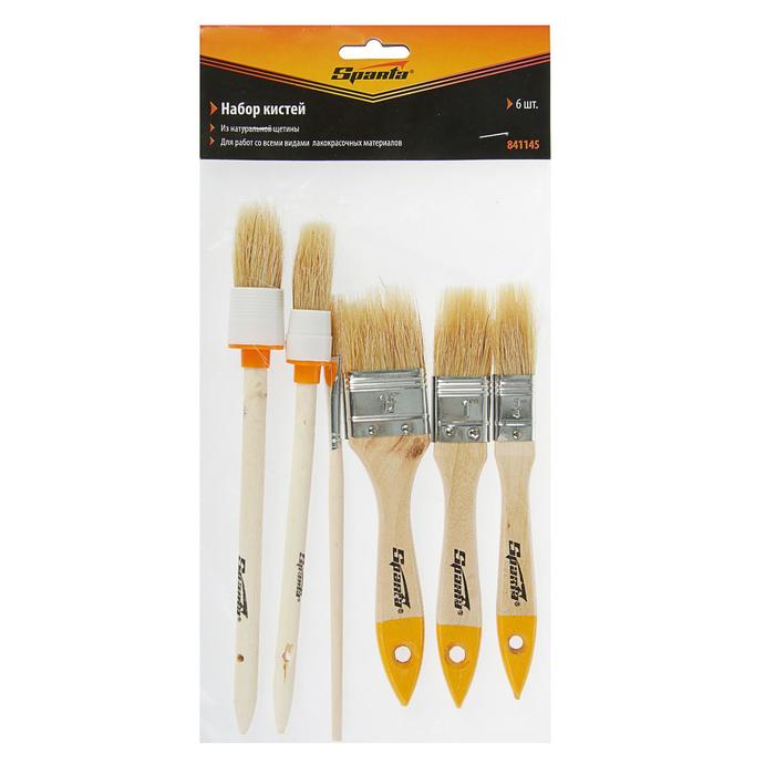 Набор кистей Sparta, 6 шт, плоские 3/4", 1", 1.5", круглые №1,№2, №4 ( 19, 25, 5 мм)