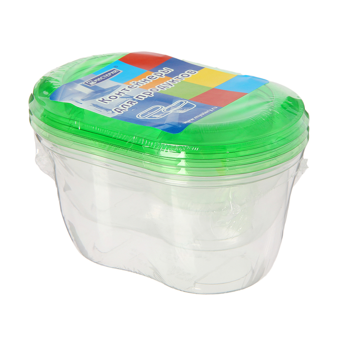 Обеспечить длительный срок хранения продуктов вам поможет Набор контейнеров "Ассорти", 3 шт: 250, 375, 500 мл, зелёная крышка 14,1х9,2 см. Эргономичное изделие используется в качестве одноразовой посуды.