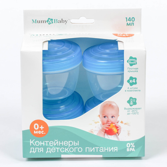 Набор контейнеров для хранения детского питания, 140 мл, 4 шт., цвет голубой