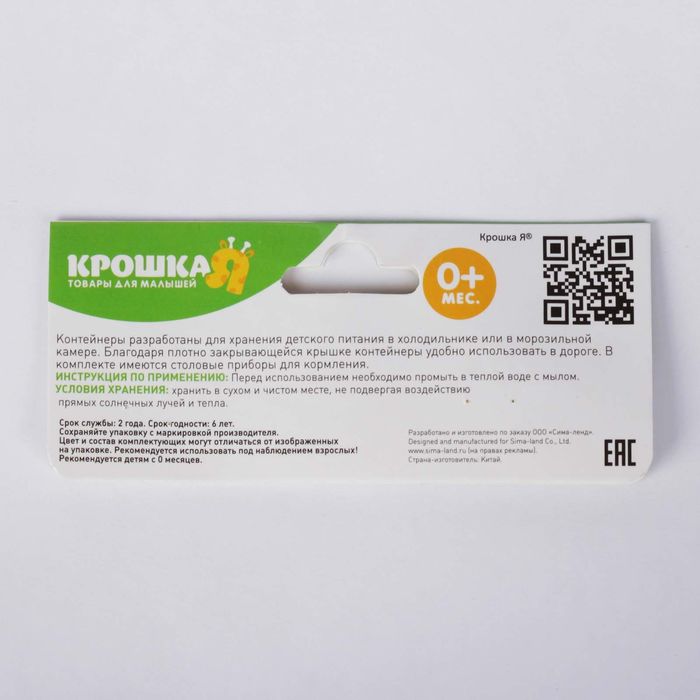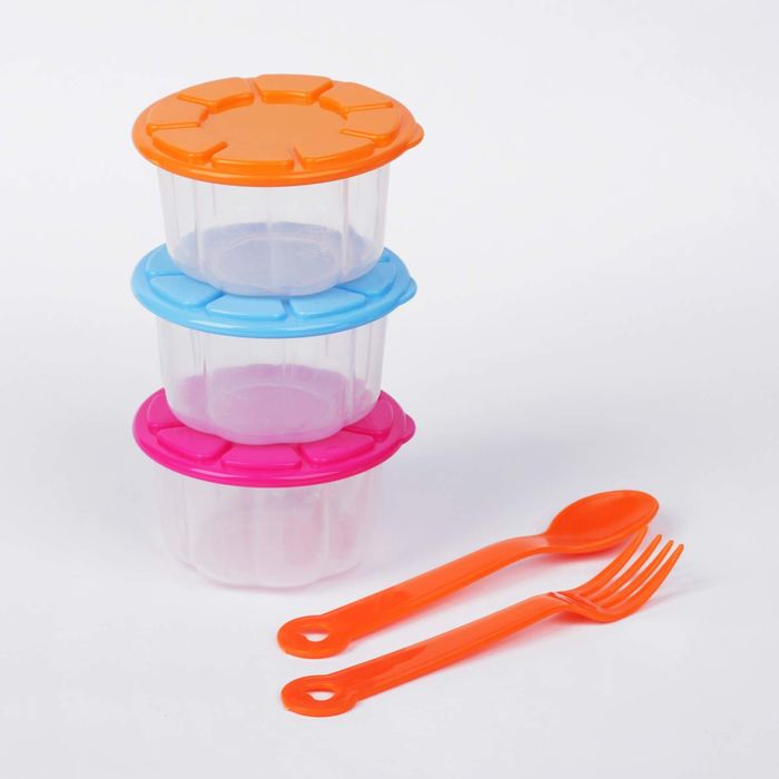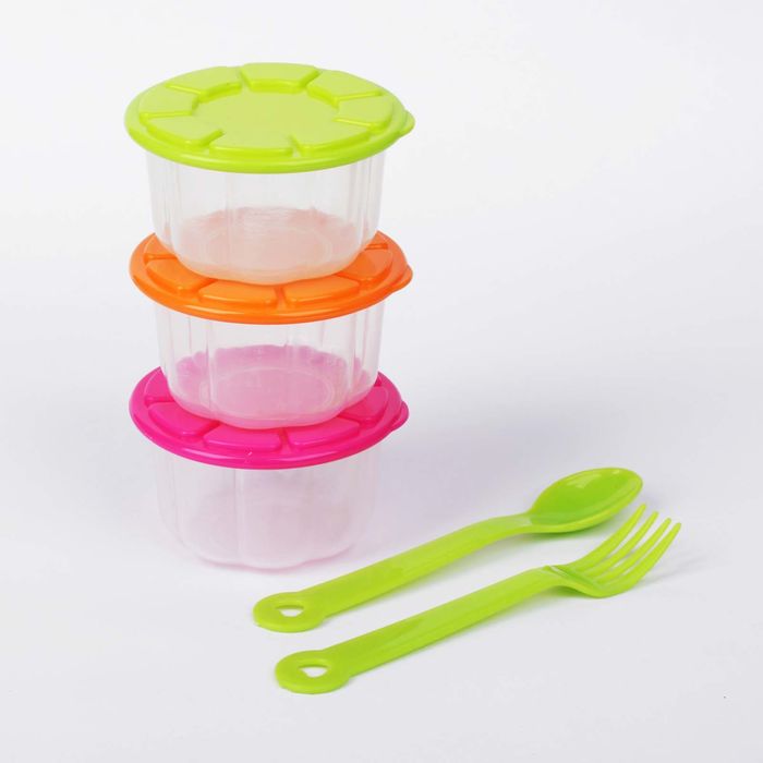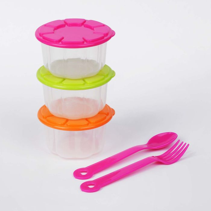 Набор контейнеров для хранения детского питания, 3 шт., столовые приборы в комплекте, цвета МИКС