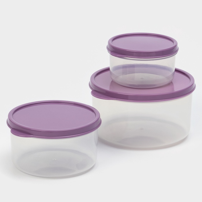 Набор контейнеров пищевых, 3 шт: 0,15 л, 0,3 л, 0,5 л, цвет фиолетовый
