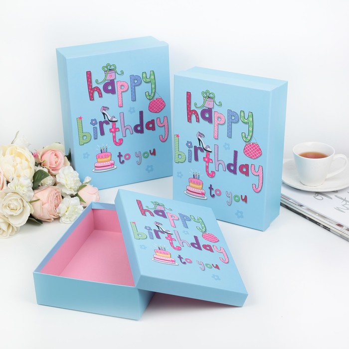 Набор коробок 3в1 "День Рождения", голубой, 29 х 21 х 9 - 26 х 18 х 6 см