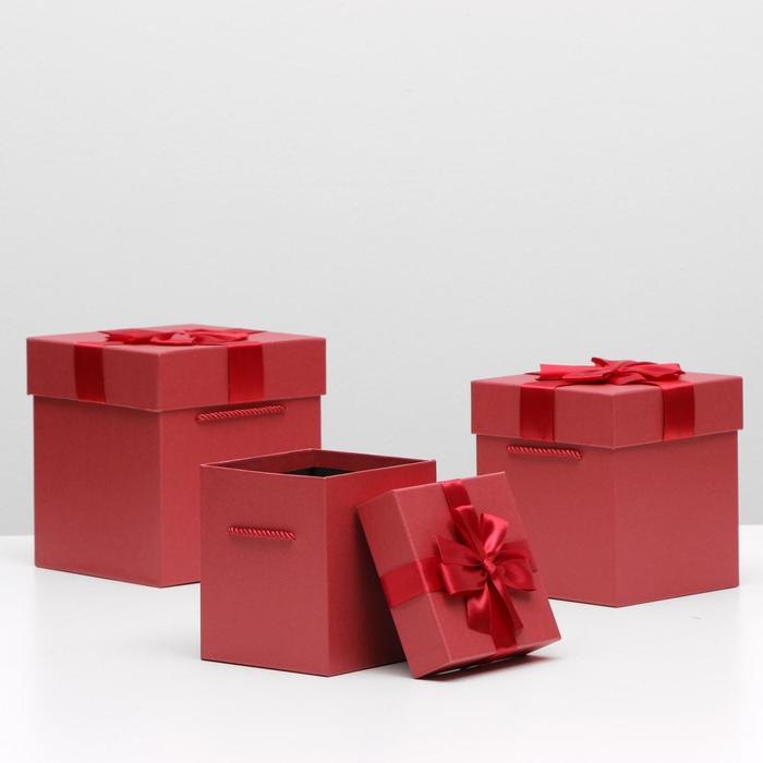 Набор коробок 3в1, красный, 19 х 19 х 20 - 14 х 14 х 16 см