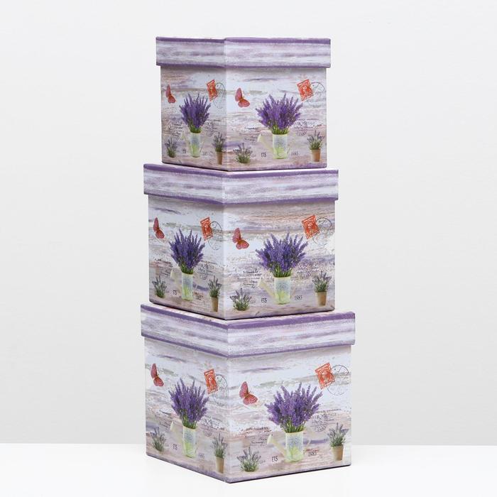 Набор коробок 3в1 "Лаванда", 16 х 16 х 16 - 13 х 13 х 13 см