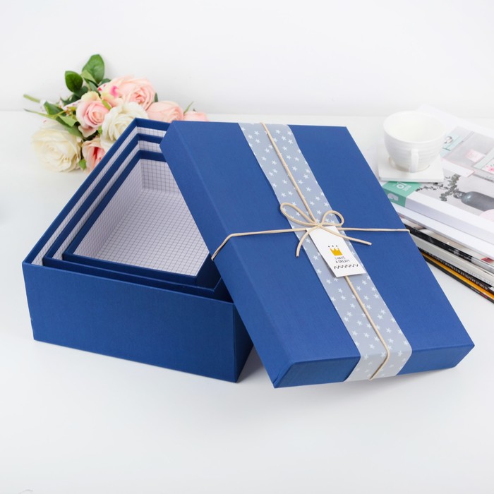 Любой подарок начинается с упаковки. Что может быть трогательнее и волшебнее, чем ритуал разворачивания полученного презента. И именно оригинальная, со вкусом выбранная упаковка выделит ваш подарок из массы других. Она продемонстрирует самые тёплые чувства к виновнику торжества и создаст сказочную атмосферу праздника. Набор коробок 3в1, синий, 33 х 25 х 11,5 - 24 х 17 х 6,5 см — это то, что вы искали.