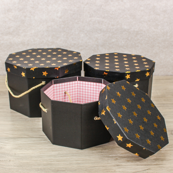 Набор коробок 3в1 "Золотые звёзды", чёрный, 25 х 25 х 15 - 19 х 19 х 12 см