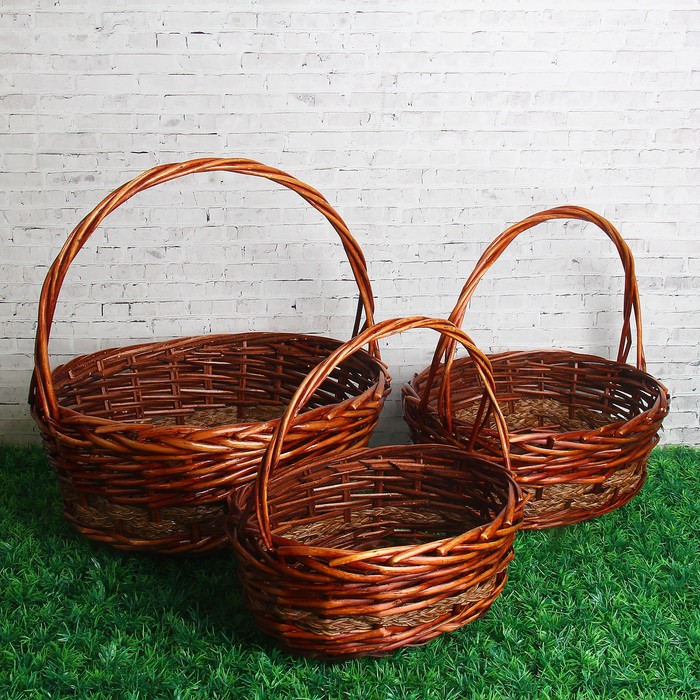 Набор корзин, 3 шт: 26×29×14/34 см, 31×25×11/29 см, 26×19×10/25 см, ива, гиацинт