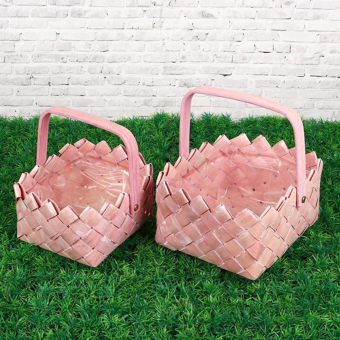 Набор корзин «Лукошко», розовые, 2 шт: 21×16×11/22 см, 17,5×12×9/17,5 см