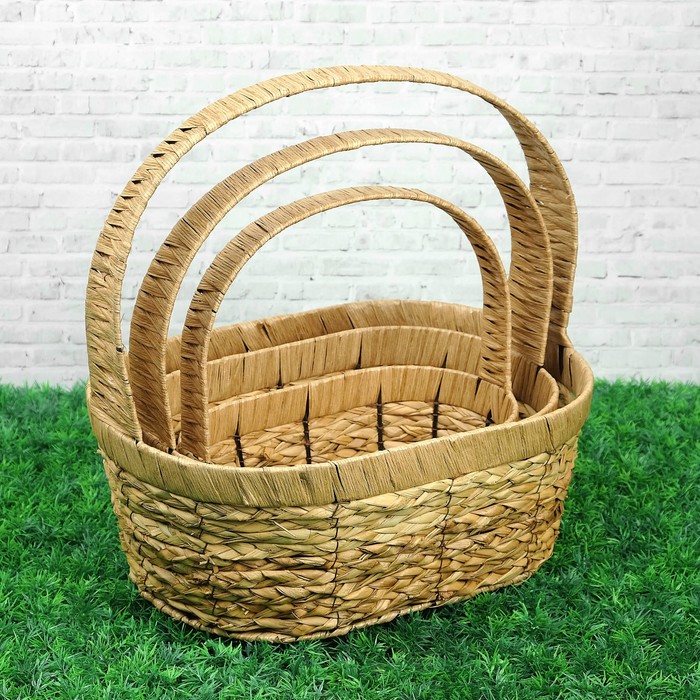 Набор корзин плетеных ива: 38х28х14хH37; 32х22х12хH32.5 26х16х10/H28, 3 шт, натуральная